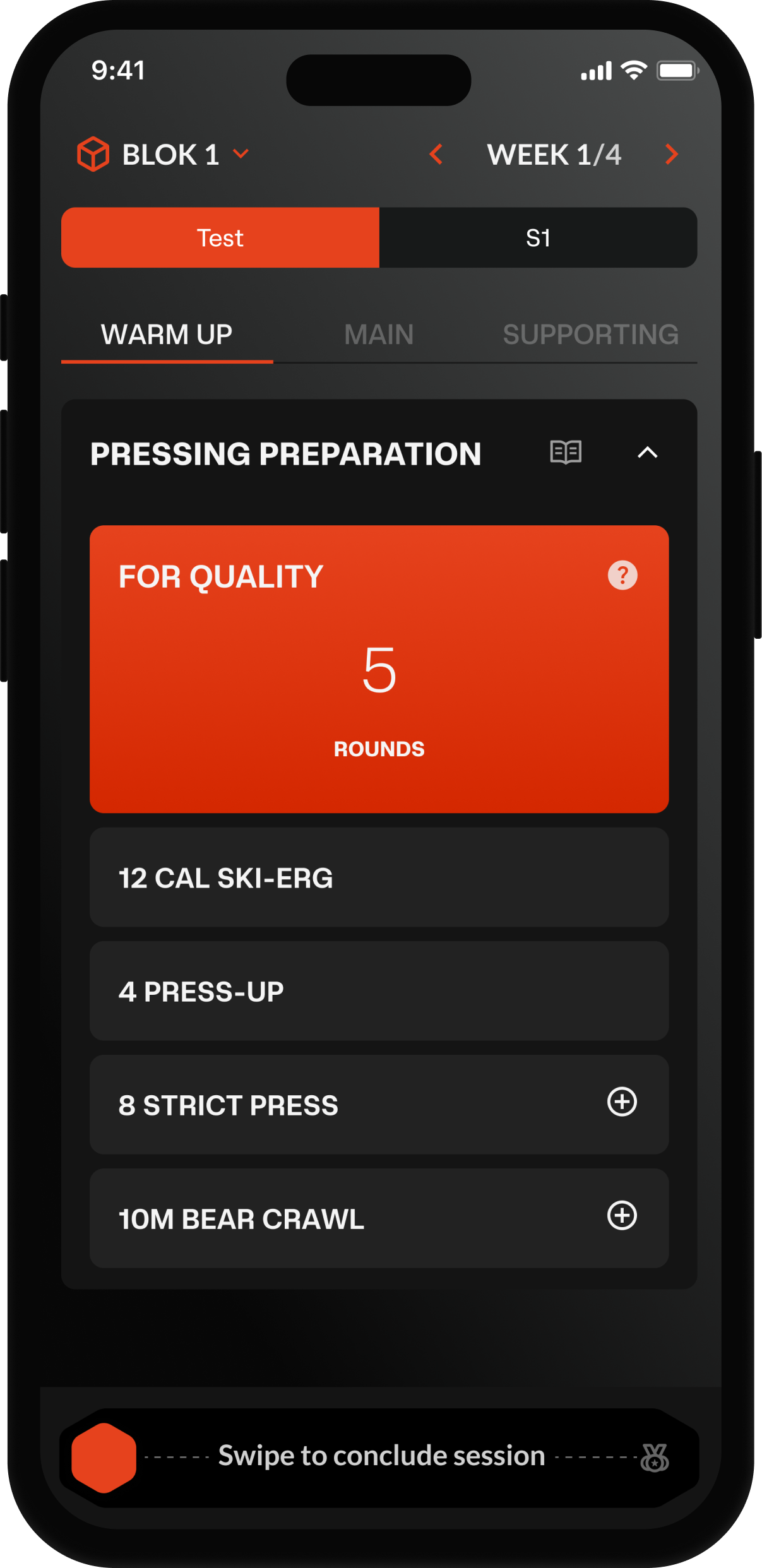 Every session in a BlokxBlok program follows a clear structure. A tailored Warm-Up to get you fully prepared; a Main section which drives progress towards the program goal; a Supporting section to build your strength, technique and/or mobility.